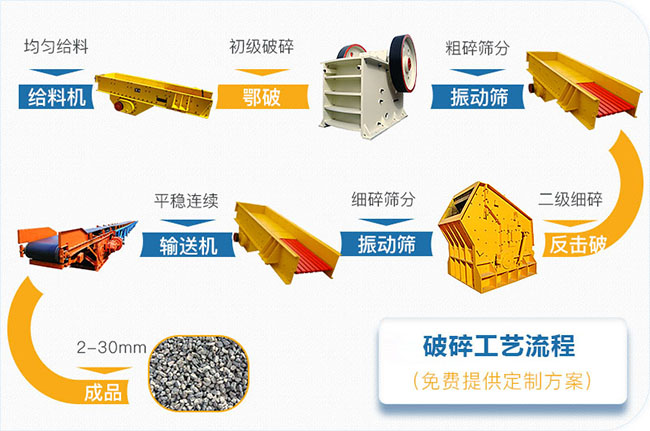 石頭變石子大概需要給料機、破碎機、篩分機、運輸系統。